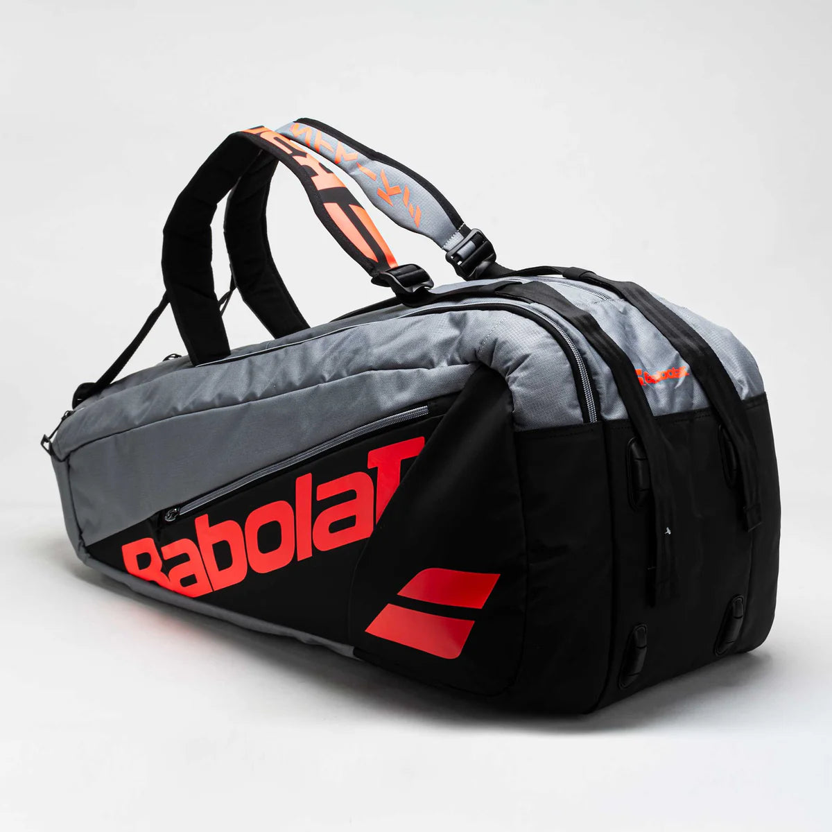 Combining style and storage, the Babolat Pure Strike 6 Racquet Holder Bag is perfect for players who want a performance bag in a convenient size. This spacious and versatile bag features two main compartments for racquets and gear, including an insulated compartment to protect strings from extreme temperatures. Two zippered side compartments store your accessories and valuables, while a breathable shoe bag separates your clean and used items. Enjoy comfortable carrying to the court from the padded shoulder straps. With a durable, water-resistant outer shell and color-free interior lining, the Babolat Pure Strike 6 Racquet Holder Bag offers eco-friendly protection!
